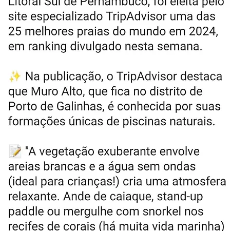 O hotel está localizado em Pôrto das Galinhas, a 10 minutos de carro do Engenho Gaipió. A Cachaçaria e Pimentaria Tio Gilson fica à 4.1 km Flat Beach Class Muro Alto 1107. Para quem viaja de longe, o aeroporto Internacional de Recife/Guararapes fica a 41 minutos de carro.